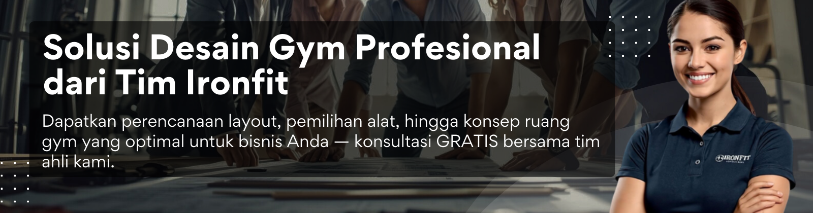 Diskusikan kebutuhan gym Anda bersama tim Ironfit.
